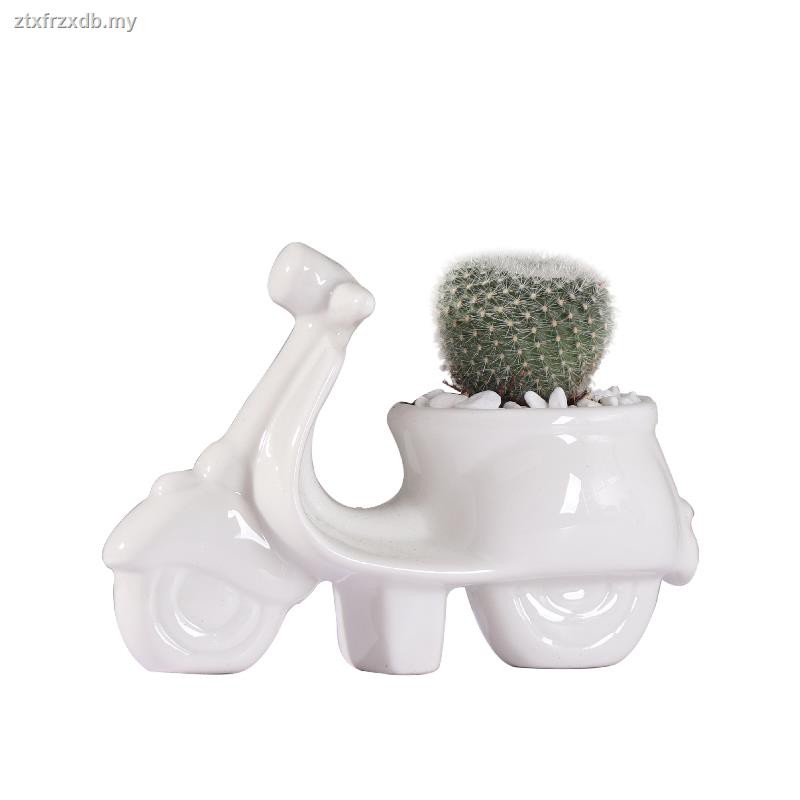 Cacti in boho style decorated plant pot.