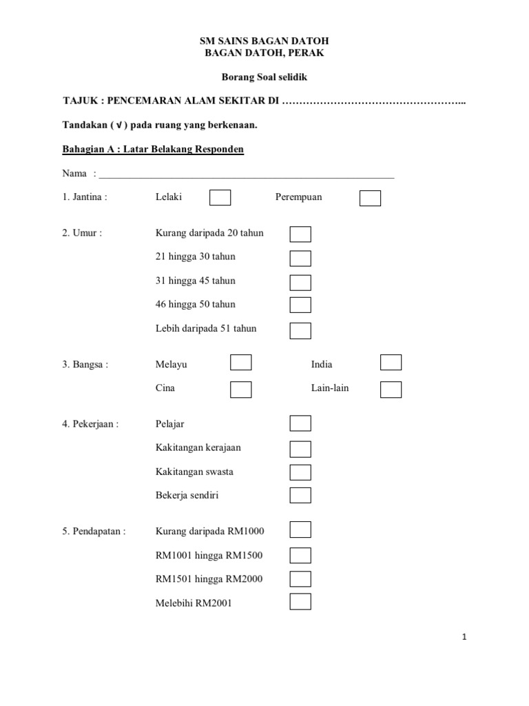 Exclaim, inquiry, question, research, atm survey, questionnaire, feedback form. Another word for opposite of meaning of rhymes with sentences with find word forms translate from english translate to english words with friends scrabble crossword / codeword words starting with words ending with words containing exactly. Contoh borang soal selidik kerja kursus pengajian amfull description. Esihat soal selidik is a survey app that helps user in answering surveys on health, safety and environment. This app provides a platform for users to communicate and view posts and news on the latest research regarding health and environment issues in malaysia.