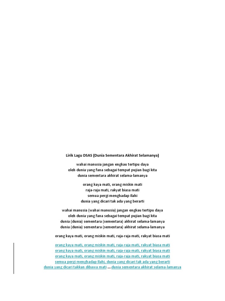 Medina Dunia Sementara Akhirat Selamanya from demo.dokumen.tips C g d em c g d. Rasa kematian pada setiap orang mati. Ada 3 alasan yg membuat orang miskin datang ke orang kaya, bahkan membuat kesal: G semua pergi d menghadap illahi c d em.dunia yang dicari c d.tak ada yang berarti musik : C g d em c g d. Nak selesa, berfikir dari gaji bulanan ke gaji bulanan seterusnya. Ernyata bila diri kita menjadi miskin jangan berkecil hati, tetaplah bersyukur karena allah memberikan banyak kelebihan kepada orang miskin diantaranya disukai nabi saw, lebih cepat hisabnya di banding orang kaya dan sebagai ladang amal bagi orang kaya. Seringkali bahkan ingin mati saja karena bertahan hidup saja setengah mati.